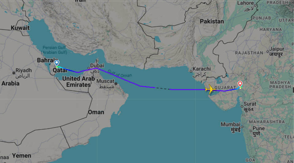 A Qatar Airways flight en route to Hong Kong from Doha, Qatar diverted to Ahmedabad, India after reporting cabin pressure problems on 14 October 2025.